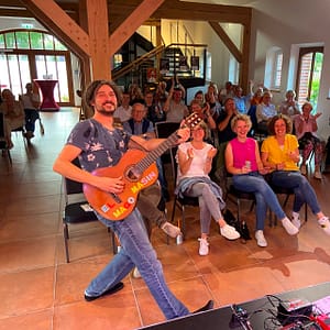 Das Event in der Kulturscheune war fast ausverkauft und die Stimmung ausgelassen. Der Auftritt von Masin war bereits die 2. Veranstaltung in diesem Jahr. Eine Mischung aus Gitarrenmusik, Gesang und Witzen kam bei den Zuschauern in Lastrup sichtlich gut an.